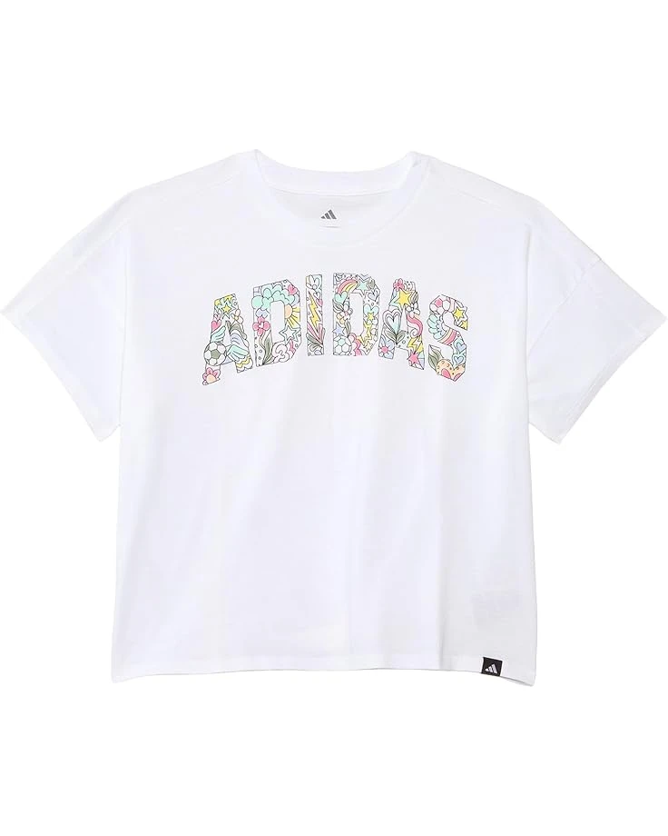 - This adidas® Kids Drop Shoulder Tee is a fresh take on an adidas must-have cropped tee. Made of soft cotton, it feels loose and has extra room in the shoulders. A vivid graphic completes the look. Featuring crew neckline, short sleeves, straight hem with brand tag.