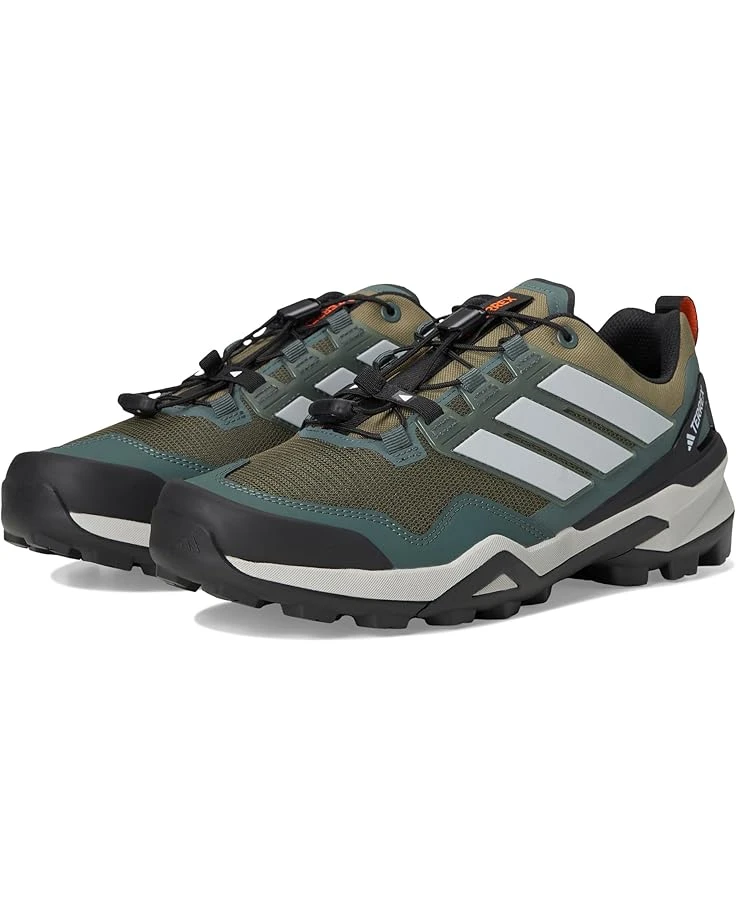 - Make your outdoor adventures and explorations more fun wearing adidas® Outdoor Terrex Skychaser Hiking Shoes. The low-top hiking shoes are designed with a mesh upper with TPU overlays, natural rubber lining, and a comfortable rubber insole with OrthoLite® sockliner. The Speed lace closure ensures a secure fit and the ankle pull tab allows easy donning & doffing. Plus, the signature three-sripe branding adds an iconic touch.