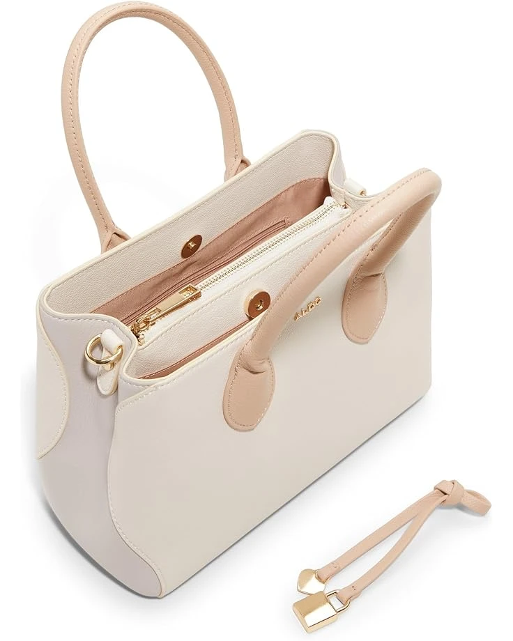 - Hold the world in style carrying the ALDO® Birin. Crafted from polyurethane, this bag features zippered main closure, two compartments with magnetic snap button closure, two top carry handles, removable shoulder strap, one zippered pocket, and one slip pocket.