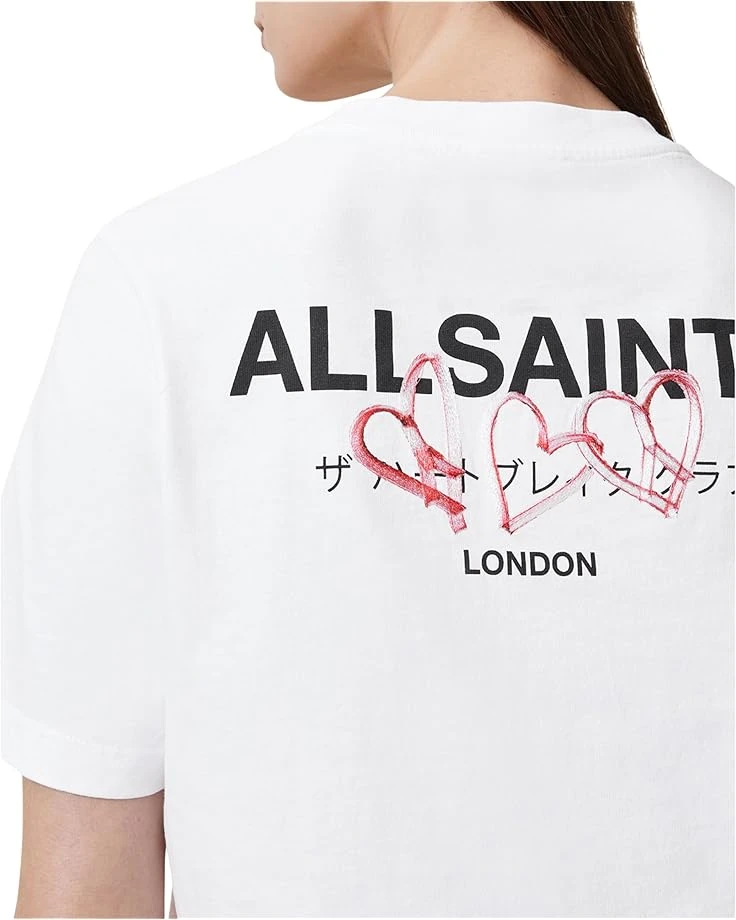 - Stay comfy and chic wearing the AllSaints™ Heart Lisa Tee! Made from a soft cotton fabrication, this tee is perfect for all-day wear. It features a crew neckline, short sleeves, and a straight hem that adds a touch of flair to any outfit.