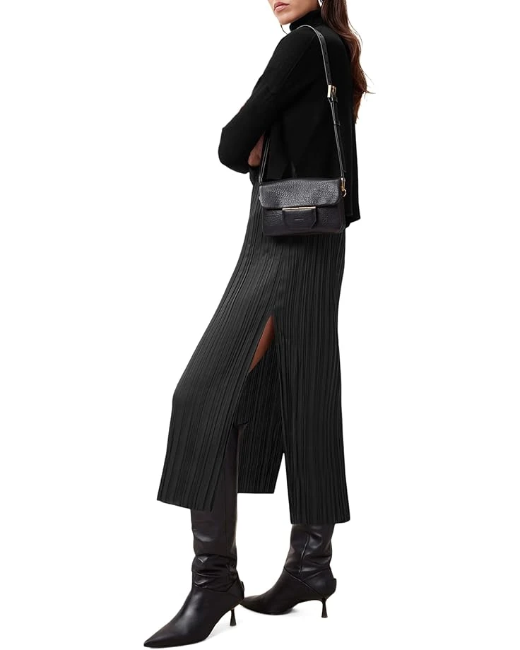 - Give a fashionable twist to your look for the next event or special occasion wearing AllSaints™ Vittoria Dress. The jumper features a turtleneck, long sleeves, and a straight hem with a cropped silhouette. The pleated dress features a crew neck, sleeveless design, side splits, and a below-the-knee silhouette.