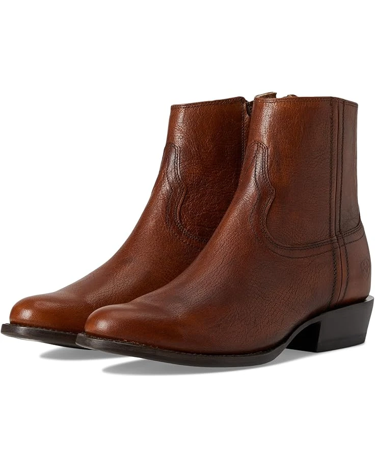 - Embrace effortless style choosing the Ariat® Barrett Western Boots. Crafted from premium full-grain leather upper and lining, these boots offer a luxurious feel and unbeatable quality. The leather-covered insole ensures all-day comfort, while the zippered side closure allows for easy on and off. Finished with almond toe design and stylish block heels, these boots are a must-have for any fashion-forward individual.