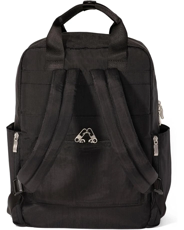 - Upgrade your daily routine carrying the Baggallini® Commuter Laptop Backpack, crafted from durable nylon with a chic, grown-up design. Stay effortlessly organized with two spacious compartments, thirteen smartly placed pockets, a padded laptop pocket, a tablet sleeve, and a scratch-resistant phone pocket. The interior privacy pocket keeps essentials secure, while the top carry handle and built-in luggage sleeve ensure travel ease. Perfect for workdays or getaways, this stylish backpack blends functionality with sophistication, safeguarding your gadgets and accessories while keeping everything within reach.