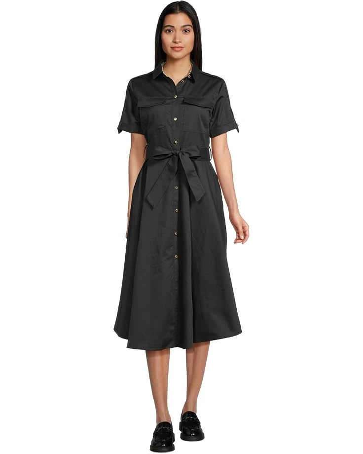 - The Barbour® Barbour Ivy Midi Dress is a cotton sateen dress with epaulette detail and a self fabric belt. It features patch pockets to chest, side entry pockets, tartan back neck tape and gold shank buttoned front closure. This midi dress is styled with short sleeves, a collared neckline, and a slim ID bar at the back.