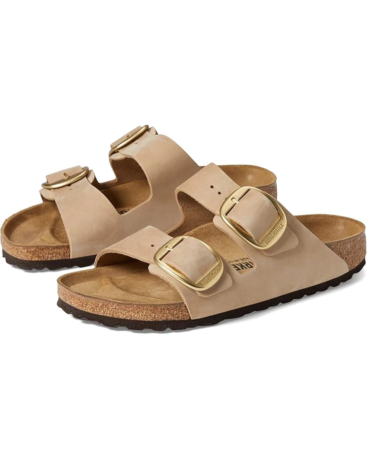 - The Birkenstock Arizona is a genuine classic that has been delighting both men and women with its timeless design for decades. The Big Buckle version features a large, elegant pin buckle a fantastic, striking eye-catcher on this otherwise understated sandal. The upper is made from high-quality nubuck leather that boasts a natural, rustic appearance.