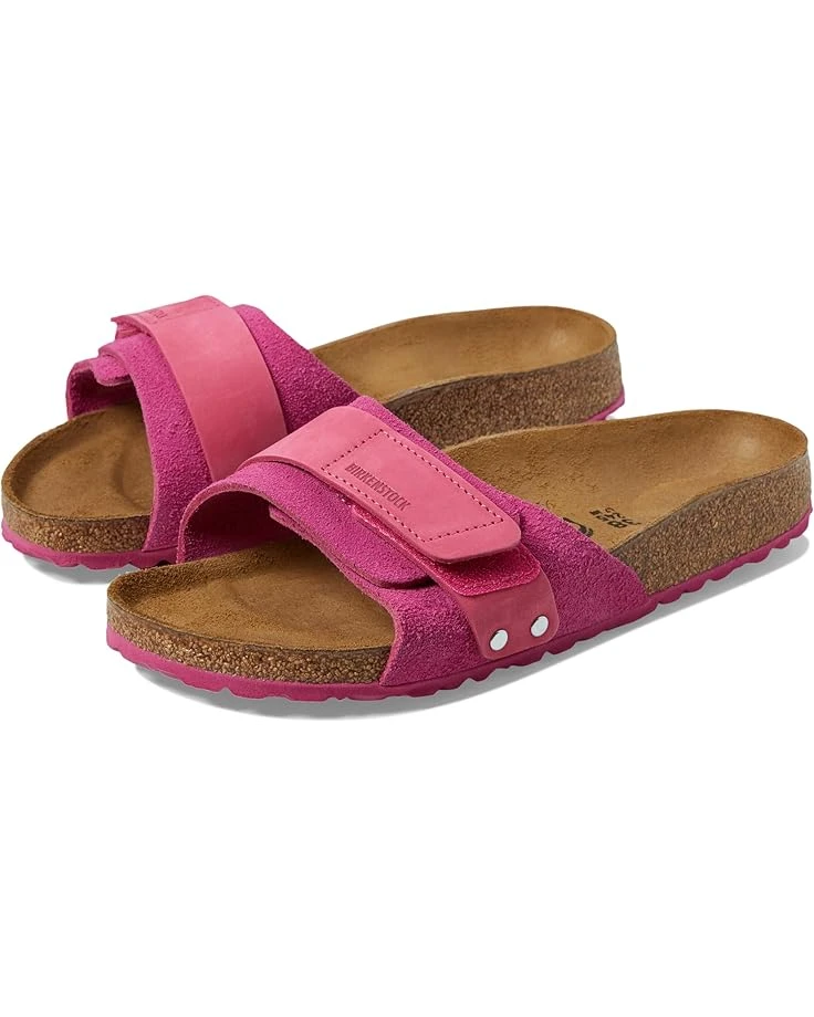 - The casual BIRKENSTOCK Oita takes its inspiration from the classic Kyoto model and stands out with its slim and feminine design and individually adjustable fastener. This offers optimum grip and is complemented by two decorative rivets. The upper is made from especially soft suede, which hugs the foot like a second skin, combined with high-quality nubuck leather.