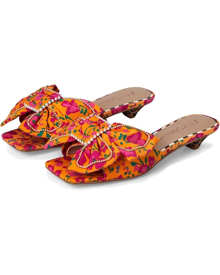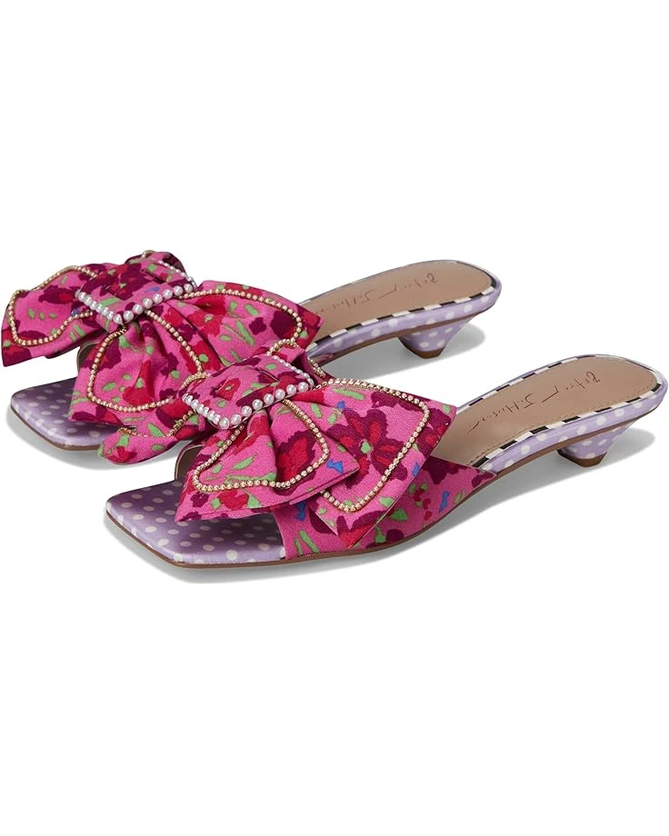 - Sugar rush for your feet styling Blue™ by Betsey Johnson Aylah. Designed for the modern fashionista, this slip-on beauty combines elegance and charm with its faux leather upper and dainty bow detail. The kitten heel adds just the right lift for all-day comfort, while the flower embellishments bring a whimsical, girly touch to your look. With a durable rubber outsole and sleek faux leather lining and insole, these heels are as practical as they are pretty.