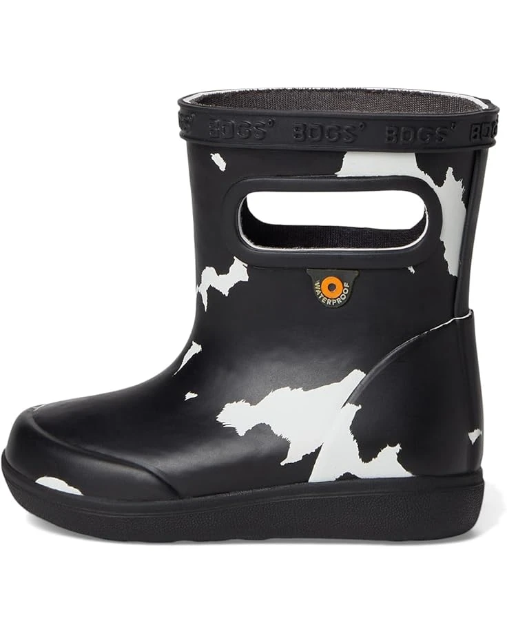 - Let your child’s imagination soar, no matter the weather, with the Bogs® Kids Skipper II Cow waterproof rain boots. Crafted with ultra-soft and flexible rubber, these boots are designed to keep little feet cozy and dry. The DuraFresh™ natural bio-technology fights odors, while BOGS Max-Wick™ technology evaporates sweat. The bio-based footbed provides ultimate comfort while minimizing environmental impact, and easy-on handles make wearing these boots a breeze.