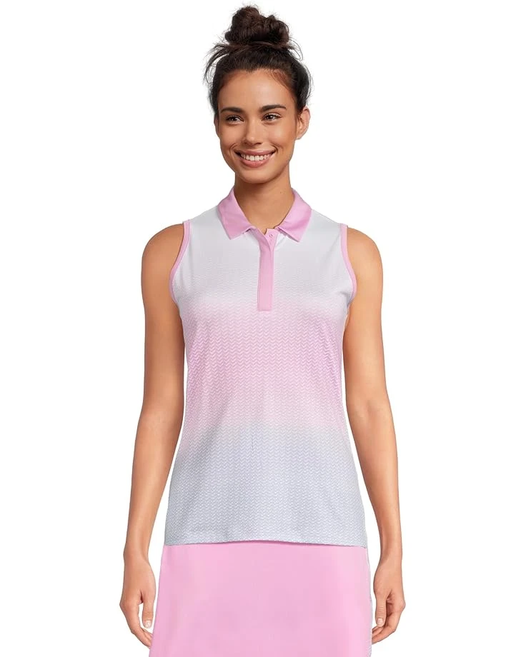 - Turn heads on the course while staying cool and confident in the Callaway® Chev Gradient Sleeveless Top. Designed for performance and style, this regular-fit essential features a sleek collared neck with a snap button placket, delivering a polished, sporty look. The sleeveless, pull-on design allows for unrestricted movement, letting you focus on your swing. Engineered with Opti-Dri™ technology, it wicks moisture away, keeping you fresh and dry under pressure. Plus, built-in sun protection shields against harmful UV rays, so you can play longer without worry. The bold chevron gradient print adds a striking, modern edge-because looking good is always part of the game!