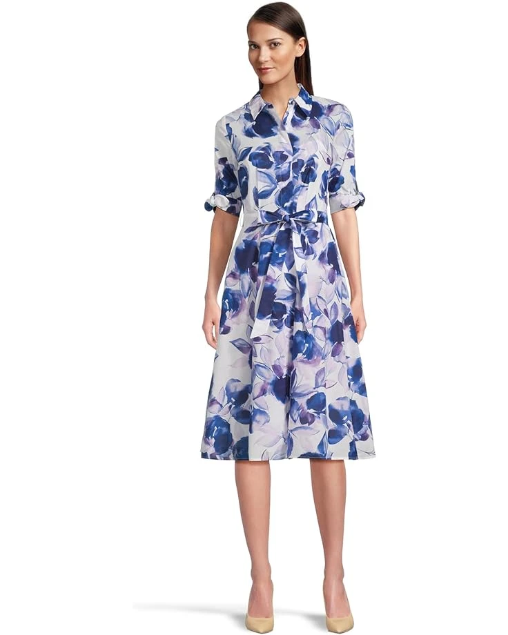 - Elevate your everyday look in chic style in the Calvin Klein® Cotton Floral Tie Waist dress. Crafted from a cozy cotton, this dress features a point collar, short sleeves with tie detailing at cuffs, side hand pockets, and allover print.