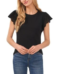 Be the first to review “CeCe Crew Neck Tee With Embroidered Lace Sleeves | Shirts & Tops” Cancel reply
