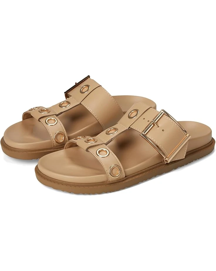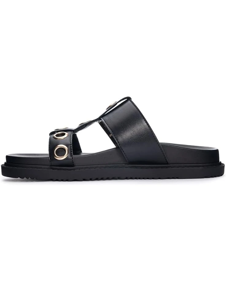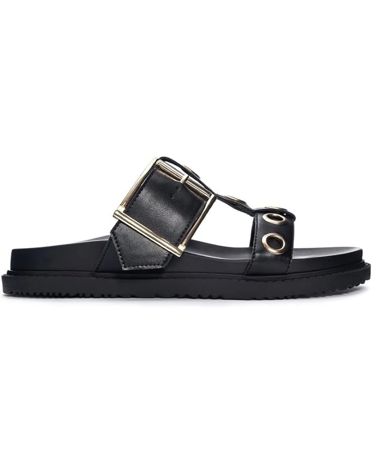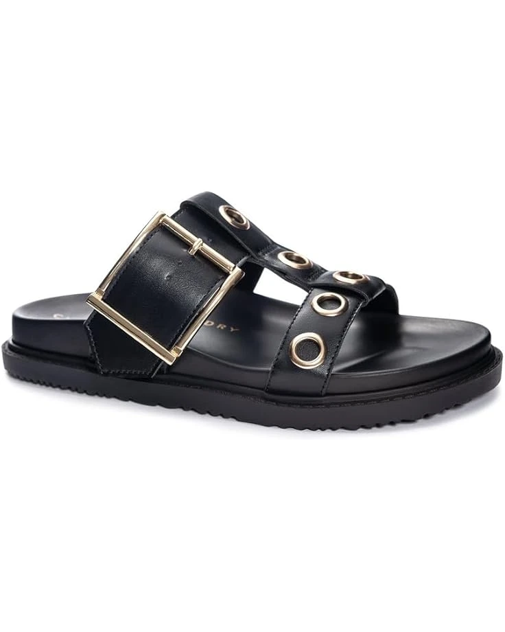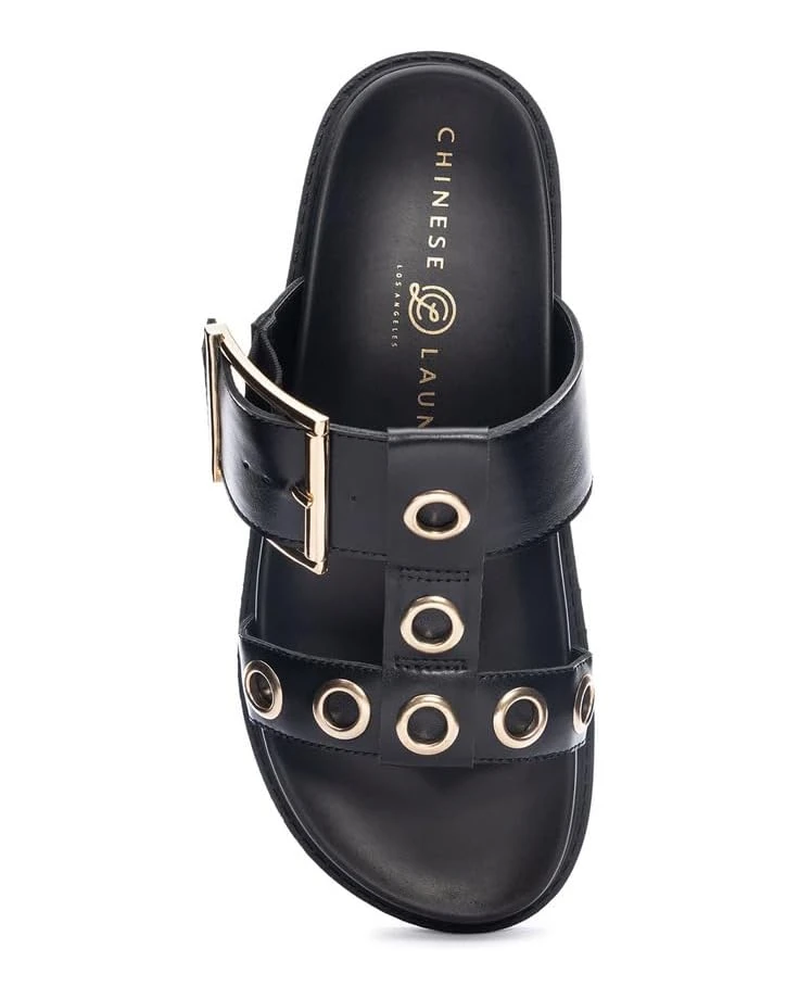 - Make every step a symphony of comfort and style wearing the Chinese Laundry® Rozalia Sandals. The slip-on footwear features faux leather upper construction with metal grommet allover, buckle adjustable ankle strap, and open round toe silhouette.