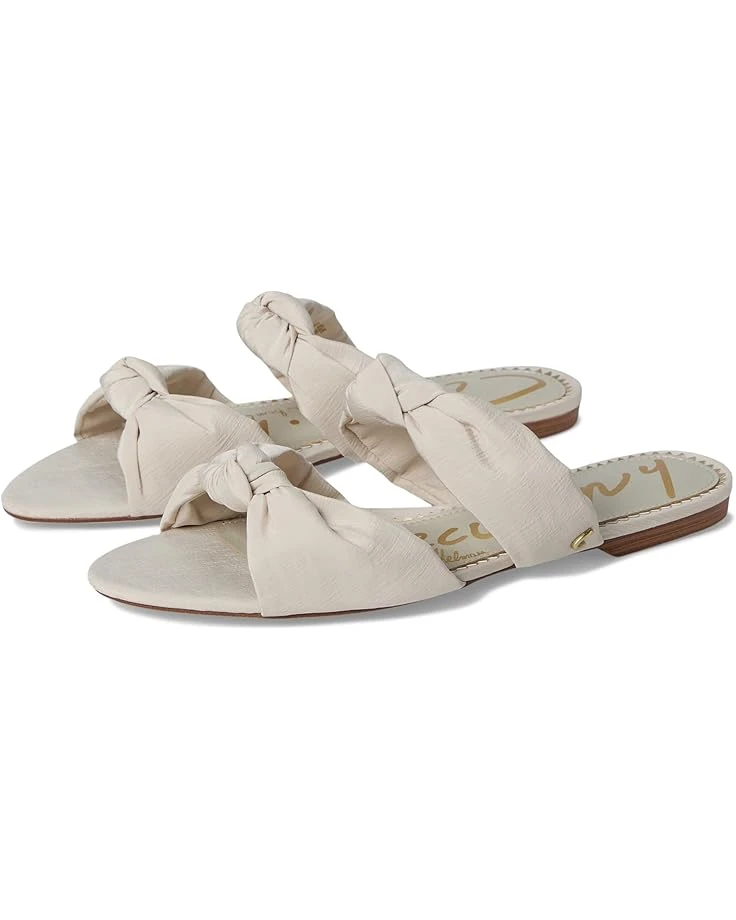- Walk in comfort, step out in style: The Marissa flat sandal from Circus NY by Sam Edelman® is your new go-to for effortless elegance. Designed for trendsetters who crave both fashion and function, this must-have slide features a sleek satin upper with a sophisticated two-band design-your new go-to for day-to-night styling. The slip-on silhouette ensures easy wear, while the lightweight PU insole and flexible TPE outsole keep every step cushioned and comfortable.
