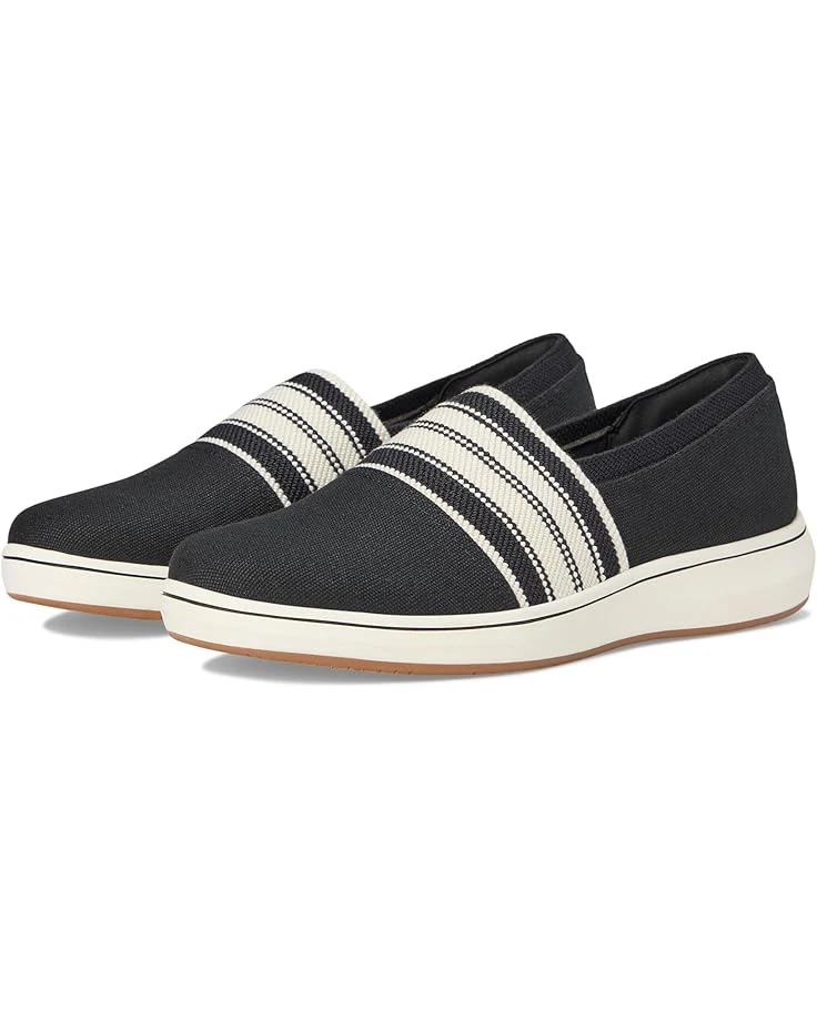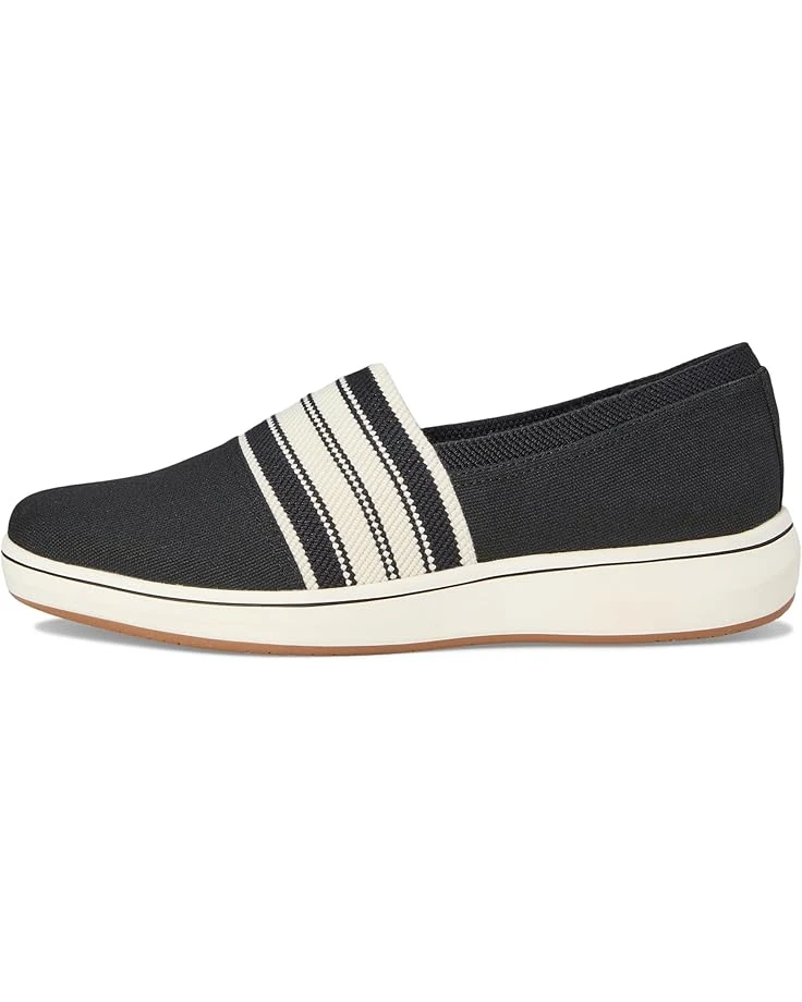 - Start the season off on the right foot choosing the Clarks™ BeezeSky Mist, Clarks featherlight Cloudstepper prepped for year-round wear. Crafted with a soft stretch textile upper elevated by a preppy striped vamp and painted midsole, this effortless slip-on features a removable cushion footbed for superior comfort underfoot and a flexible slip-resistant sole. The low-top shoes feature smooth jersey lining that feels soft against the foot and removable Cushion Soft™ EVA footbed delivers superior cushioning underfoot.