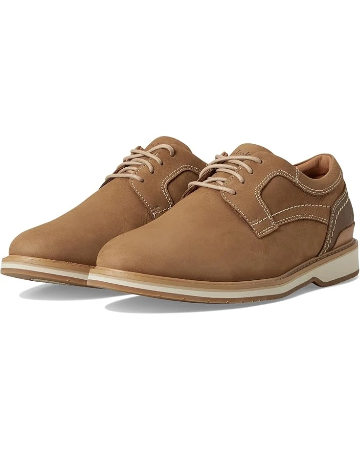 - Premium craftsmanship meets unparalleled comfort in the Clarks® Monahan Plain. Featuring a luxurious sand nubuck upper and authentic lacing for a secure, personalized fit, these shoes are the perfect blend of sophistication and ease. The contoured EVA footbed delivers lasting cushioning, while the lightweight EVA midsole ensures superior underfoot comfort with every step. Enhanced by a breathable mesh lining and durable rubber insole and outsole, these shoes are designed to keep you moving in comfort and style.