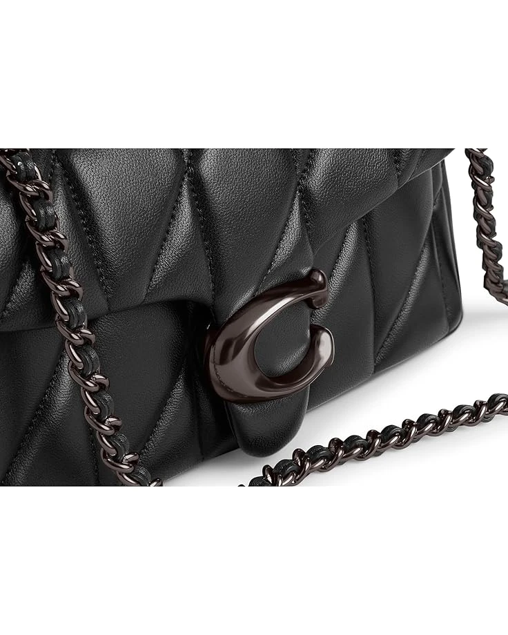- Get a smashing look carrying the COACH™ Quilted Tabby Shoulder Bag 20 With Chain. This handbag features allover quilting detailing, push-lock closure, and sleek metal brand logo on the front. It is crafted with leather lining.