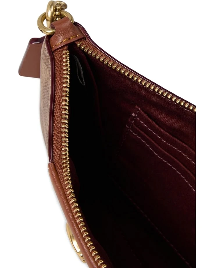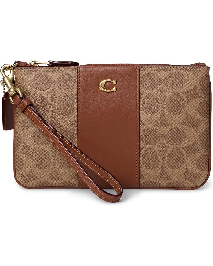 - Crafted in polished pebble leather, this wristlet is perfectly sized for cards, cash and a phone. Wear it on your wrist or clip it inside a larger Coach bag.