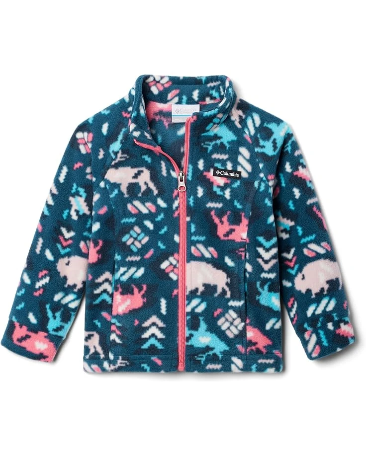 - Layer her up by keeping her comfortable in the supersoft Columbia® Kids Benton Springs™ II Printed Fleece. This relaxed-fit jacket is designed with a high-pile fleece fabrication to lend optimal warmth.