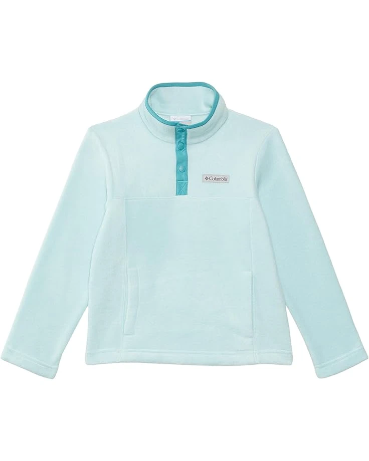 - Cozy up your little one for cool days with the Columbia ®Kids Steens Mountain™ II 1/4 Snap Fleece Pullover. This jacket features high-neckline, two snap button closure, long sleeves, two front hand pockets, and brand logo on the left chest.
