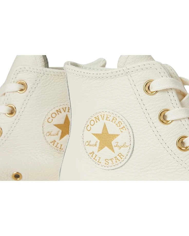 - The Converse® Chuck Taylor All Star Hi Lift Leather combines premium craftsmanship and modern comfort in one iconic high-top silhouette. Featuring a luxe leather upper with subtle gold accents, this sneaker elevates any outfit-casual or chic. The cotton lining and EVA insole keep things lightweight, while OrthoLite® cushioning ensures all-day comfort. A sturdy rubber outsole provides traction, and the lace-up closure offers a classic, customizable fit.