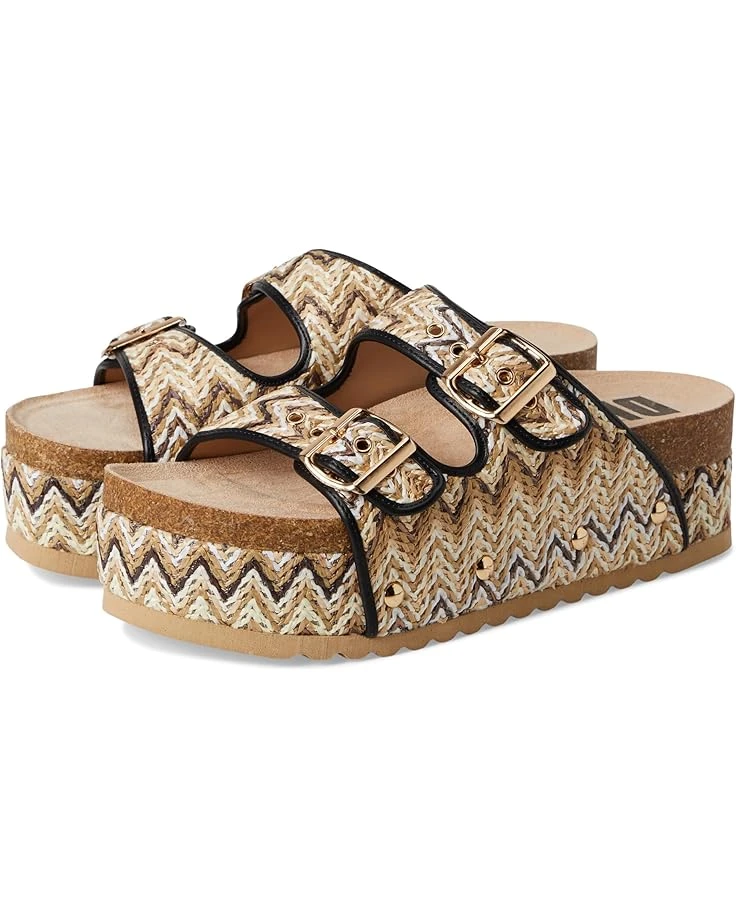 - Get ready to explore the town with confidence while depicting your sophisticated fashion sense wearing the Dirty Laundry™ Pueblo Heeled Sandals. Designed with a denim or a faux suede upper, the shoes look impressive with the twin buckle detailing on the upper, the platform heel with embellished studs on the sides, and the contoured, padded cork-finished footbed.