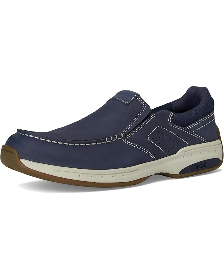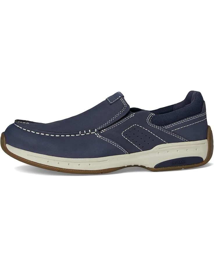 - Step up the style game and walk with enhanced comfort wearing Dunham® Waves Shoes. The slip-on style shoes are crafted with a leather & textile upper, textile lining, EVA midsole, and an orthotic-friendly removable EVA footbed for a custom fit. The External Heel stabilizer (R-Bar stability bar in the heel) ensures added stability as you walk.
