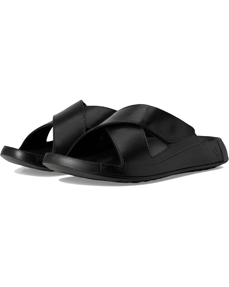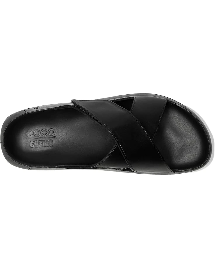 - Made with an innovative method that uses the signature FLUIDFORM construction, the ECCO® Cozmo Two Band Cross Slide Sandals fuse the premium leather upper to the flexible polyurethane outsole to create a one-piece slide. Their anatomically shaped leather footbed is covered in complementary colors of soft suede. Featuring a soft and responsive PU midsole and adjustable straps across the front, these slide sandals will get you through the warm-weather months in true Scandinavian style whilst offering superior comfort.