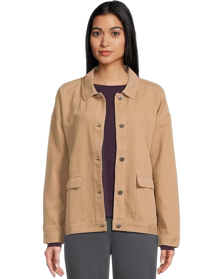 - Polish off any look with the easy style of the Eileen Fisher® Classic Collar Jacket. The spread collar and zipper-front closure helps to create a timeless look. This simple, but beautiful, piece offers just the right amount of structure–and just the right amount of stretch.