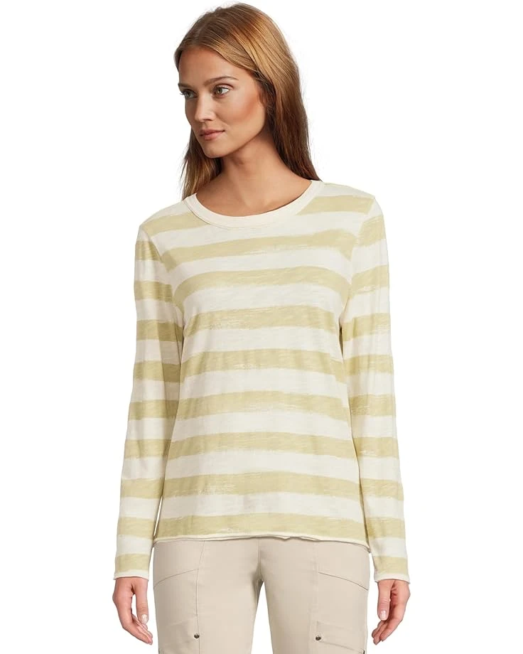 - Brushstrokes of effortless chic in the Elliott Lauren™ Paint Brush Stripe Tee. Designed for the modern muse, this long-sleeve crew neck effortlessly blends a classic silhouette with a bold, brushstroke-inspired stripe print. Crafted in a regular fit, it flatters without compromising on movement, making it your go-to for polished casual wear. The soft, breathable fabric ensures comfort, while the versatile design transitions seamlessly from brunch dates to creative workspaces.