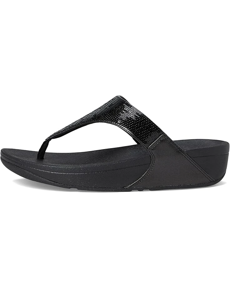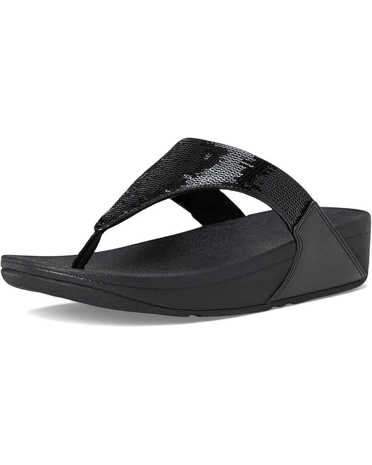 - Dazzle all day, sparkle all night! Slip into the FitFlop™ Lulu Sequin sandals and let your style shine. Featuring dual straps with ultra-refined sequins for a sophisticated sparkle, these sandals boast padded polyester uppers and metallic pearlized faux-leather back straps for extra glamor. The adjustable buckle ensures a secure fit, while the Microwobbleboard™ midsoles deliver cloud-like comfort all day. With a suede lining and durable rubber outsole, they effortlessly transition from casual outings to evening parties.