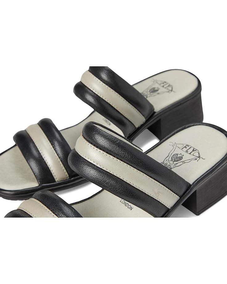 - The stitch-down construction of the FLY LONDON® EITY580FLY sandals allows for great flexibility. These heeled sandals are made of a foam insole and polyester lining. The soft leather upper is beautiful and the heel-to-toe padded insole, rounded toe shape, and flexible rubber outsole add comfort to your feet.