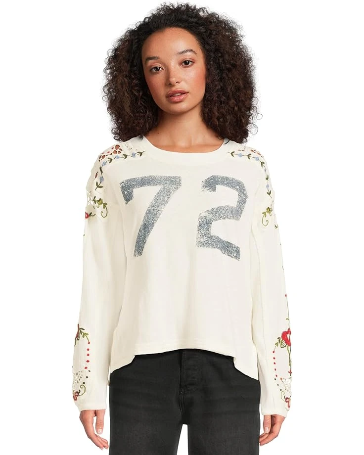 - Update your basic look wearing Free People™ Lilith Tee with any jeans or jeggings. The breathable, pull-on style tee features a crew neck, long sleeves, floral detail on the shoulders & sleeve ends, “72” text printed at the chest, and a standard-length silhouette with a curved hem.