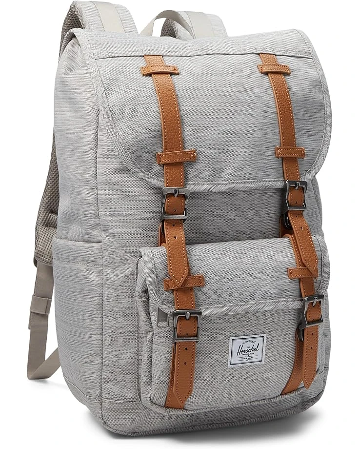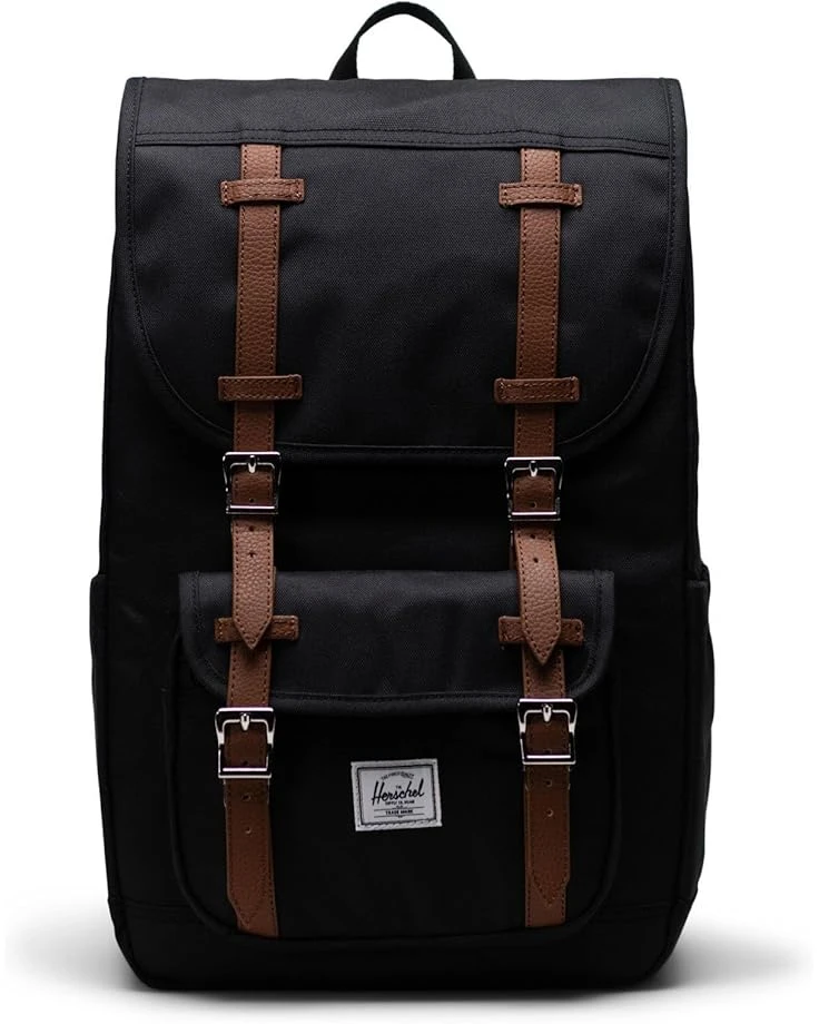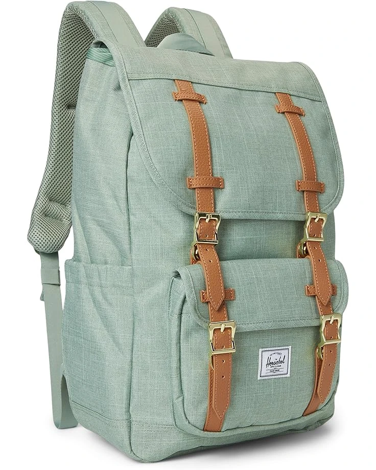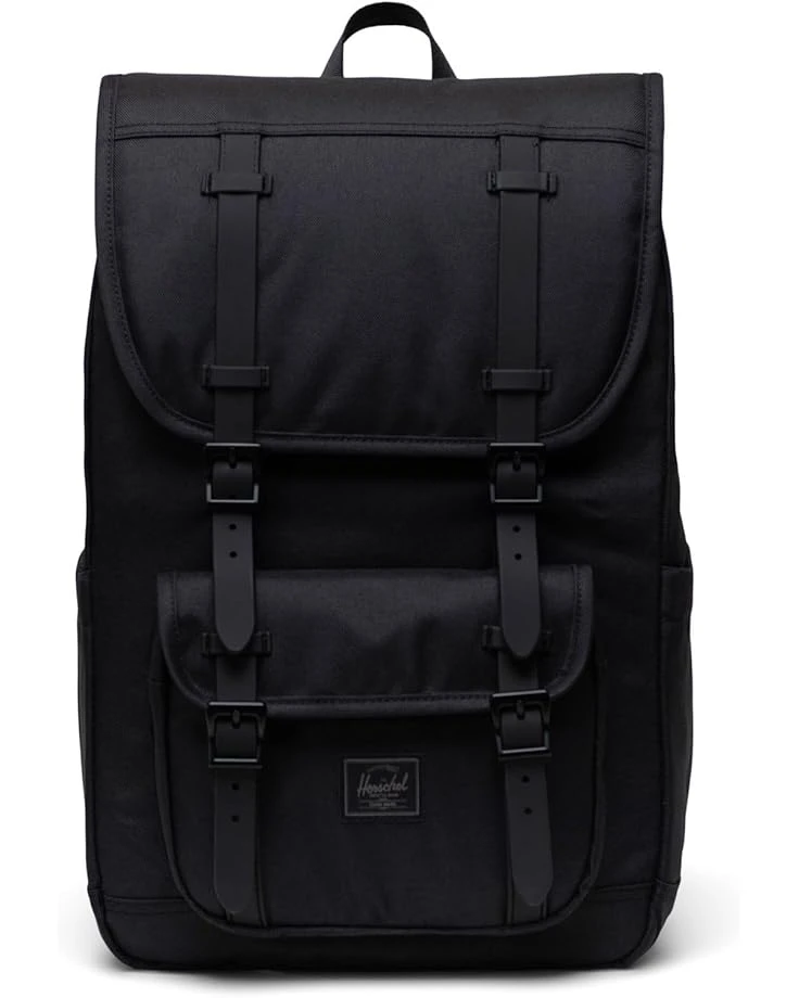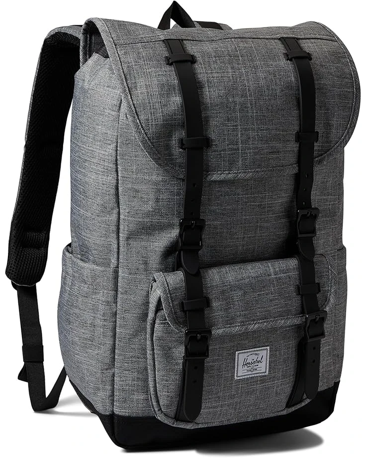 - Pack your bag and get ready to hit the road carrying the Herschel Supply Co.™ Little America™ Mid Backpack. It boasts EcoSystem 600D Fabric made from 100% recycled post-consumer water bottles. It has padded and adjustable shoulder straps, and interior and exterior pockets, and buckle closure.