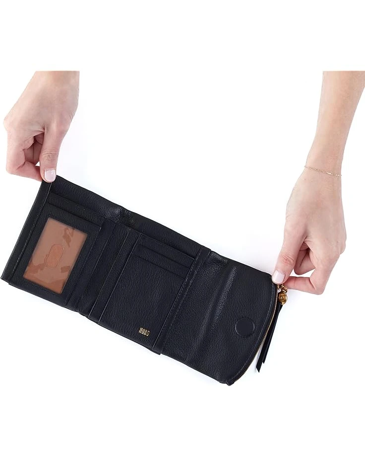 - Say hello to effortless organization: HOBO™ Fern Medium Trifold Wallet, a compact yet spacious essential inspired by our beloved Fern crossbody. Crafted from premium leather with a soft cotton lining, this beauty keeps your essentials secure and stylish. The magnetic closure opens to reveal a slip pocket, bill slot, six credit card slots, and an ID window, while the zippered front pocket and back slip pocket offer quick access to must-haves. With one roomy compartment and two pockets, it’s your perfect grab-and-go companion.