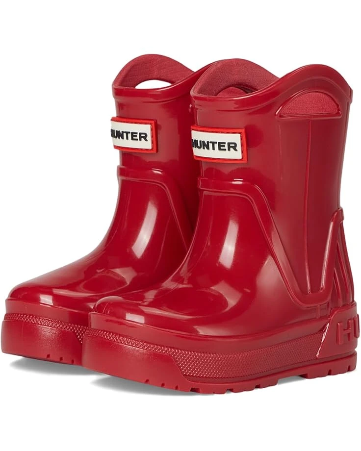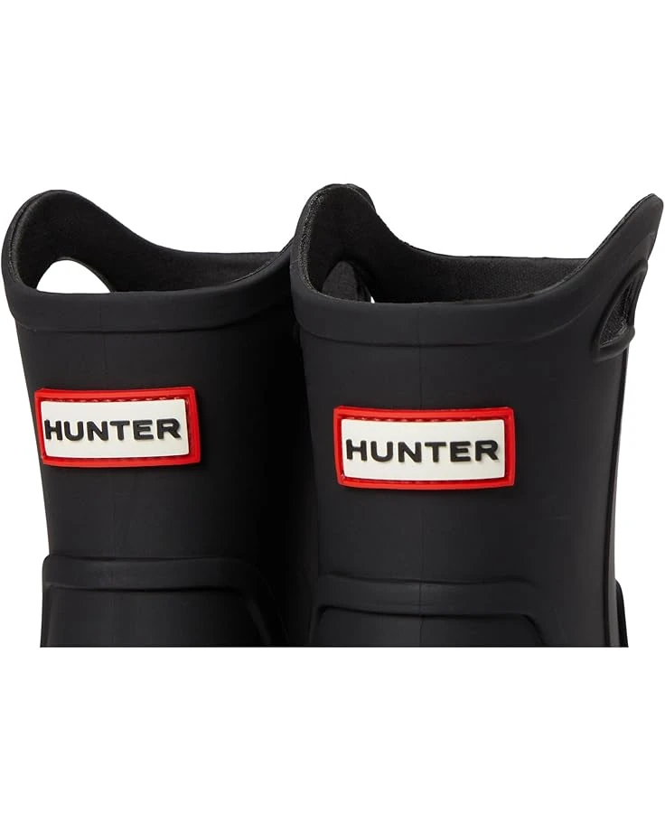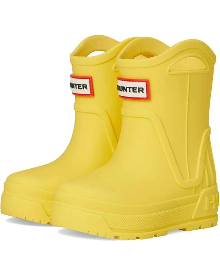 - Rainy day fun just got cooler styling the Hunter® Kids Georgey boots! Lightweight, stylish, and waterproof, these mid-calf boots are perfect for puddle jumping and adventures in wet weather. Featuring a durable synthetic upper, fabric lining, and foam insole for all-day comfort, they keep little feet dry and cozy. The slip-on design with easy pull-on handles ensures quick, fuss-free wear, while the sturdy synthetic rubber outsole provides solid traction. With a classic round toe and practical design, these boots are the ultimate blend of style and function for all your child’s rainy day escapades!