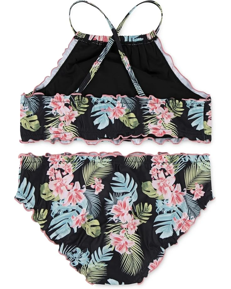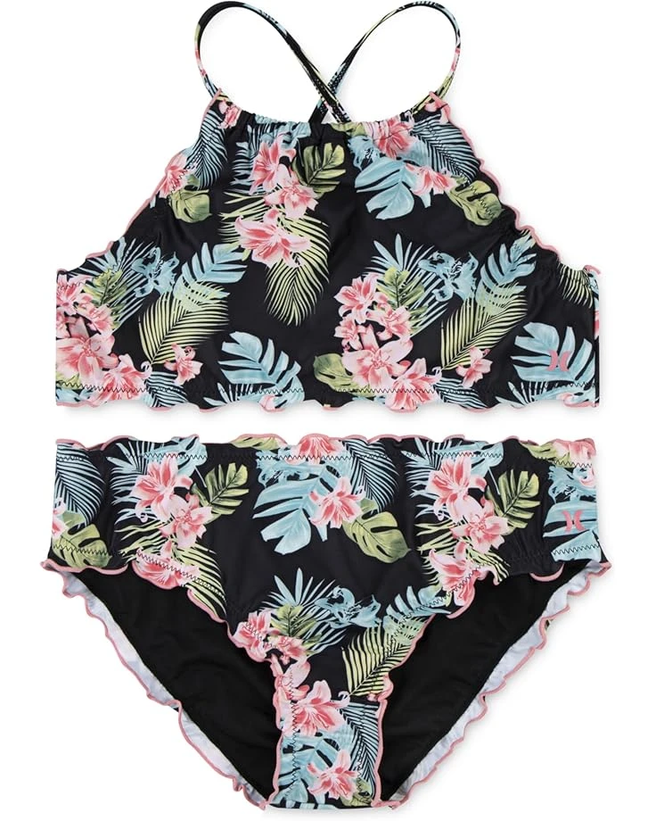 - Let your tiny swimmer enjoy the endless fun wearing the Hurley® Kids Halter Bikini. Made with fine quality poly tricot that provides UPF50+ sunlight protection, this is a 2-piece suit and consists of a halter top and regular-cut bottoms. Featuring colorful floral print allover, purled hemlines, and pull-on style swimsuit.