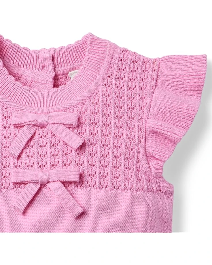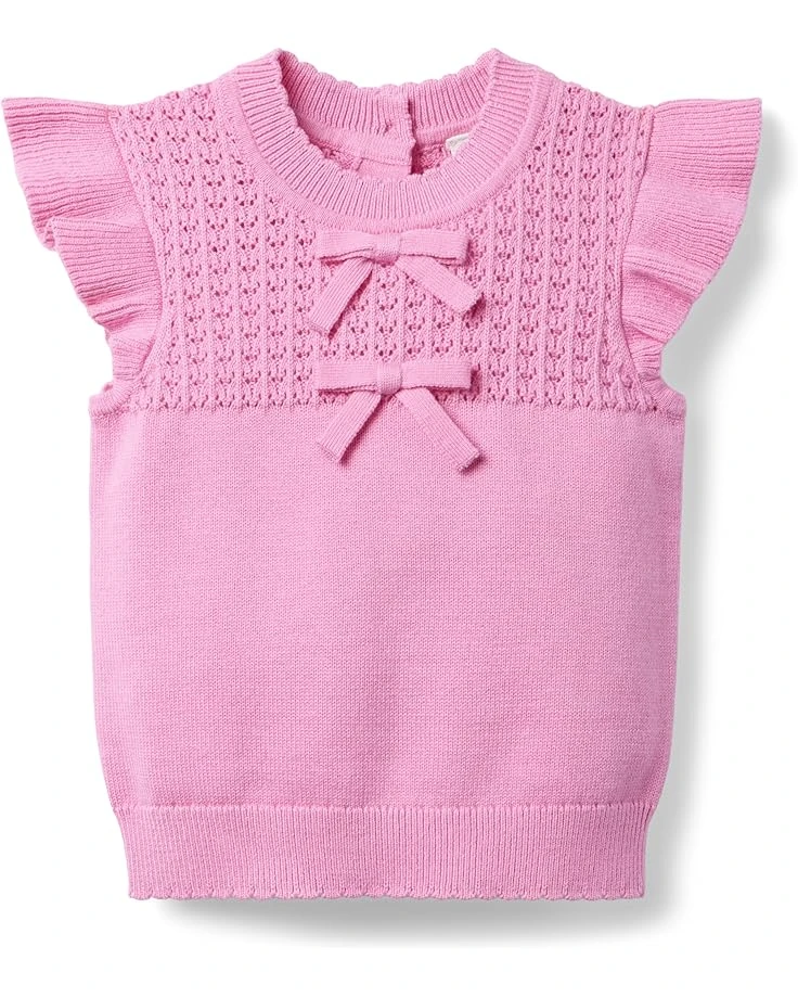 - Discover elegance in simplicity by donning the Janie and Jack® Pointelle Sweater Top. Crafted with love, this charming top boasts puffed short sleeves, a designer round neck, and a captivating zig-zag pattern. The pull-on closure ensures easy dressing, making it a delightful blend of fashion and function.
