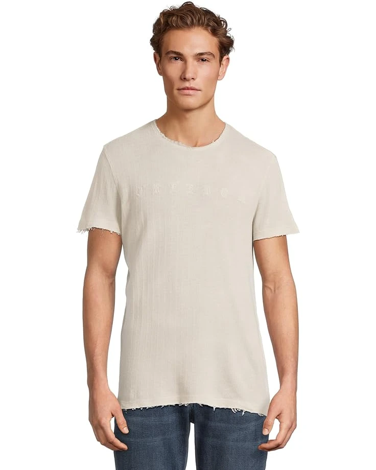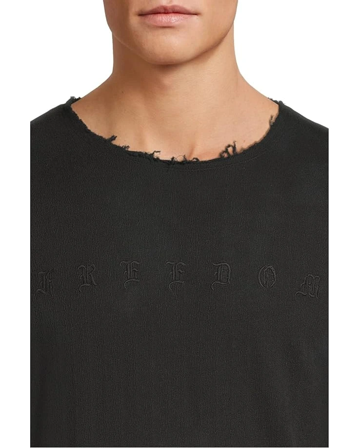 - Designed with frayed edges, the John Varvatos™ Freedom Tee KG6931S25 offers a chic yet flamboyant flair. It has a crew neckline, short sleeves, and easy pullover style.