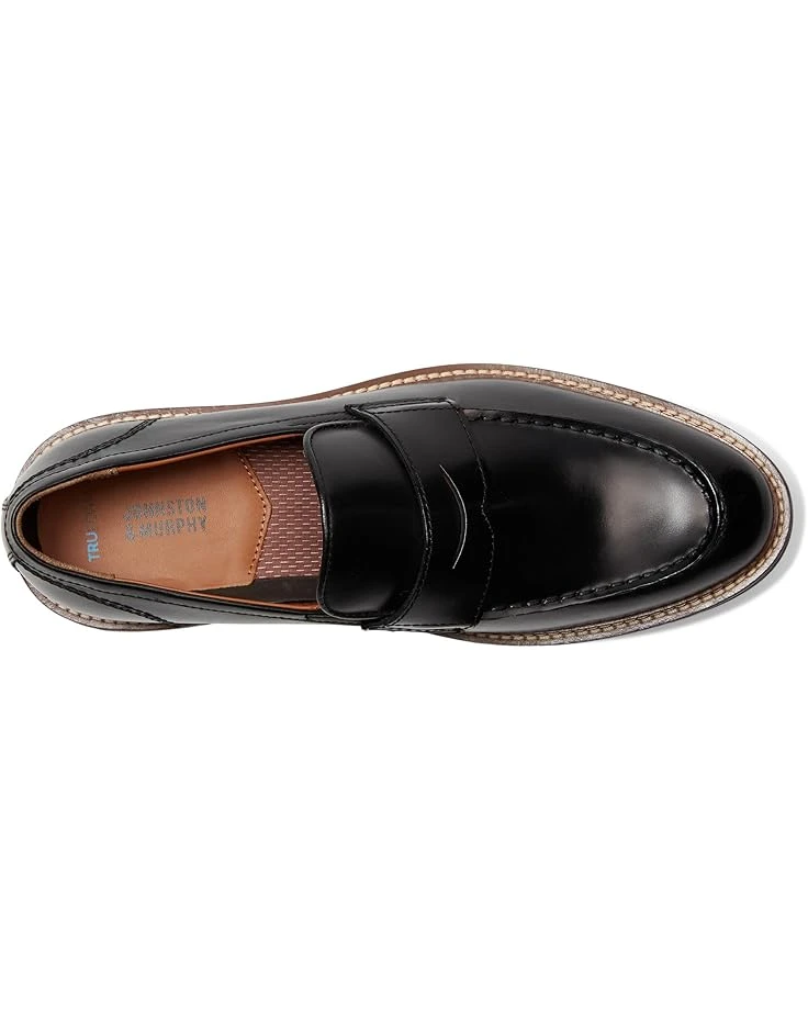 - Walk in style and sophistication wearing the Johnston & Murphy® Upton Penny loafers. The pull-on footwear features a hand-finished leather upper with microbe-resistant polymesh lining made from 50% recycled materials. With a classic moc toe design and a pennykeeper detail on the vamp, these loafers seamlessly boast timeless elegance.
