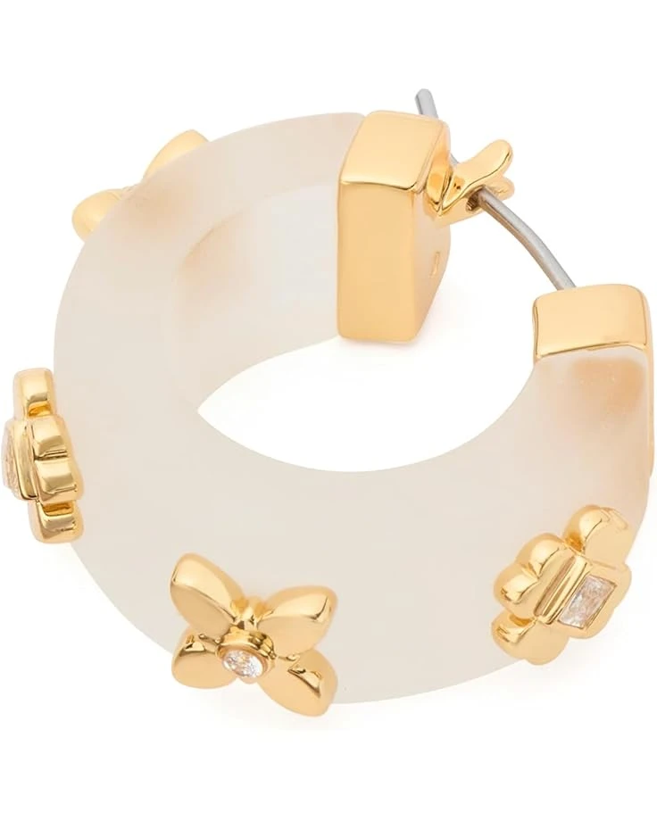 - Embrace your inner fashionista donning the Kate Spade New York® Heritage Bloom Small Hoops. Made from brass and steel, these earrings are adorned with shimmering cubic zirconia stones that catch the light beautifully. The chic acetate accents add a fun twist to these classic hoops, making them a versatile addition to your jewelry collection.