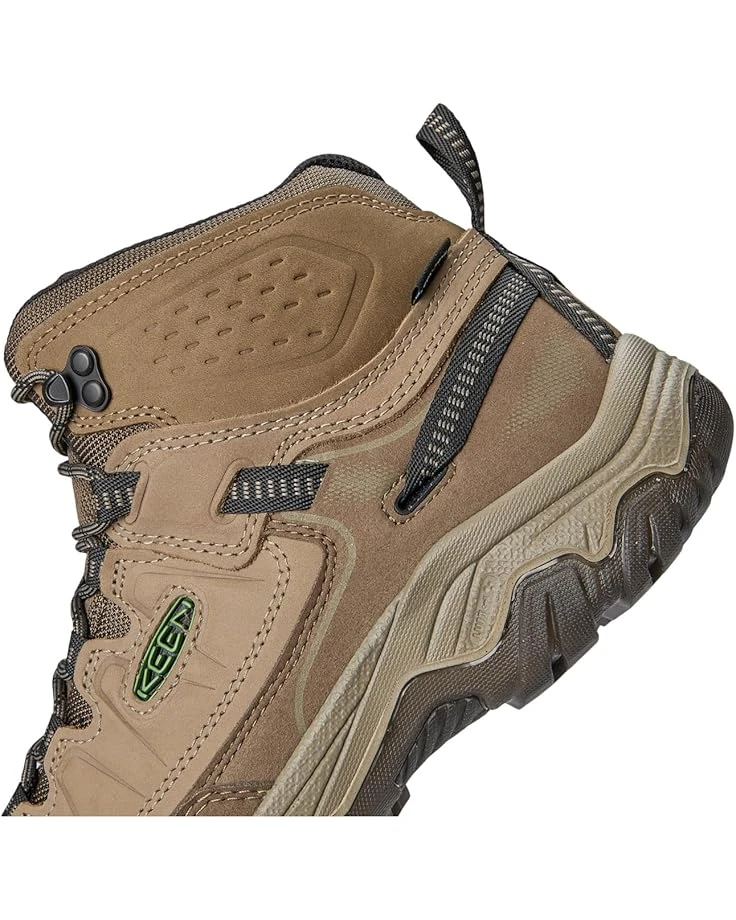 - Conquer every trail, rain or shine! The KEEN® Targhee IV Waterproof Hiking Boot is your go-to for rugged adventures, offering out-of-the-box comfort and lasting durability. Crafted with a premium leather upper and direct-attach construction, these boots seamlessly fuse the upper and outsole for long-lasting performance. The KEEN.DRY waterproof membrane keeps feet dry, while the mesh and polyester lining ensure breathability on any trek. A resilient cushioned midsole and all-terrain rubber outsole provide superior traction, stability, and shock absorption. Designed with KEEN’s signature wide fit, a secure lace-up closure, and a protective bump toe, these ankle-high boots are built for years of exploration.