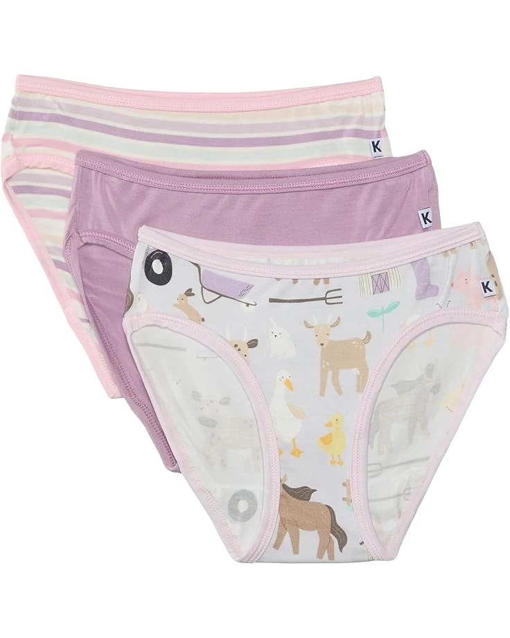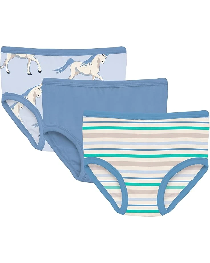 - Keep this Kickee Pantsâ„¢ Kids Print Girl’s Underwear Set of 3 in your wardrobe to get a convenient layer for your intimates throughout the weekdays. They have incredibly soft & stretchy construction with moisture-wicking and tag-free design. The mid-rise elasticated waistband and classic-cut legs allow easy movement. Allover floral fun prints and solid colors make the pants chic in look.