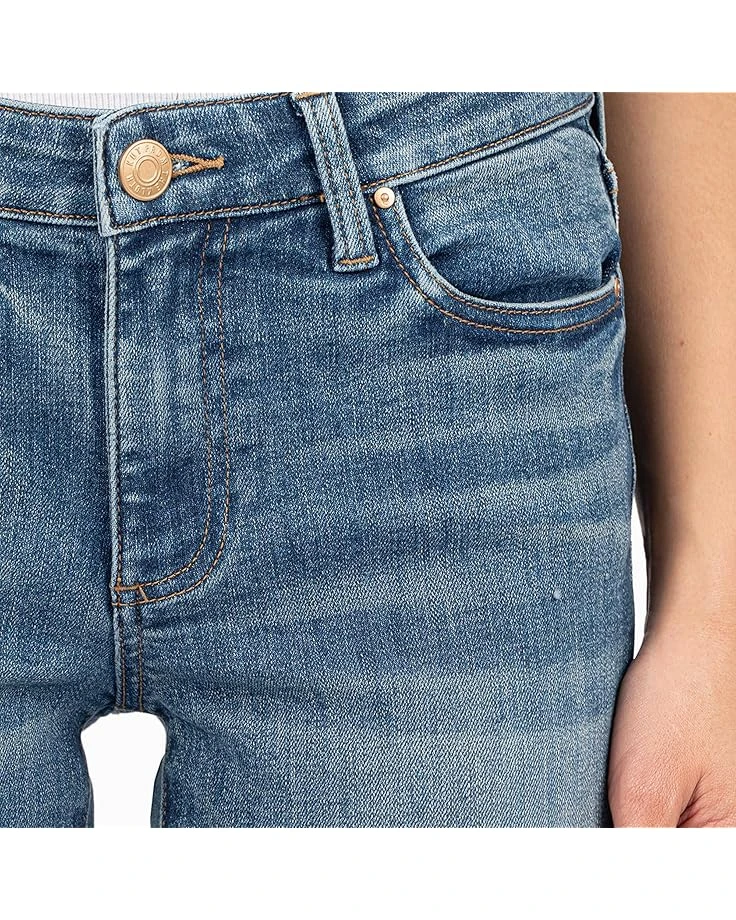 - The KUT from the Kloth™ Petite Catherine Boyfriend in Giving has a relaxed fit through the waist and legs, with a feminine style for a more flattering shape. Fall in love from the moment you put them on. This beloved style is made to be lived in and loved. Crafted in our easy-to-wear cotton blend, a sleek stone base wash is perfect for any occasion. The mid-rise jeans feature a straight-leg style, belt loops on the waist, a zip-fly, and a button closure.