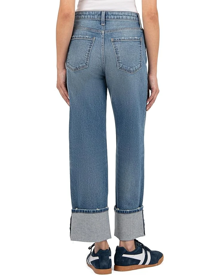 - Accentuate casual yet chic fashion vibes wearing KUT from the Kloth™ Sienna High Rise Wide Leg-roll Up 5″ Jeans. The pull-on style jeans features a high-rise waist with belt loops, a zip-fly & button closure, a five-pocket design, and a wide-leg style with rolled up hem.