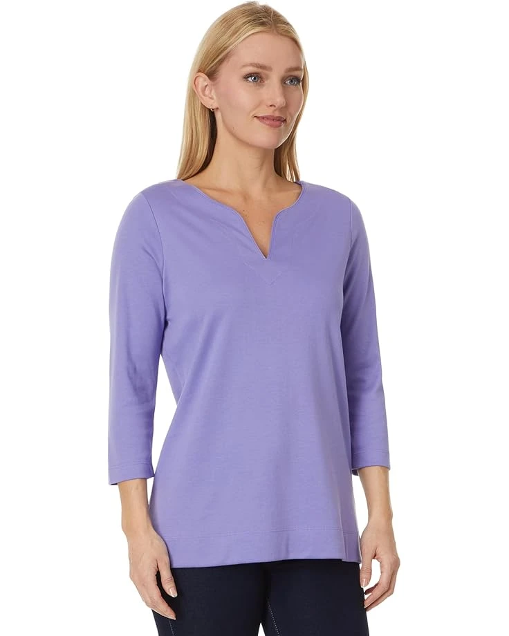 L.L.Bean Pima Tops Split-Neck Tunic 3/4 Sleeve | Shirts & Tops