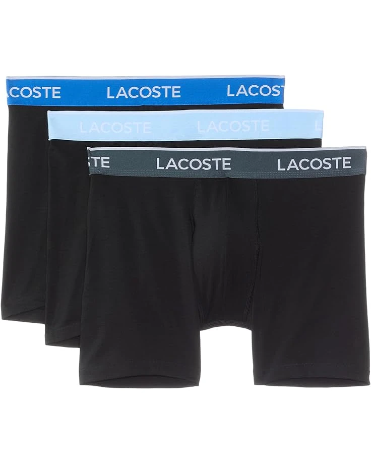 - The Lacoste® Cotton Stretch Essentials Boxer Briefs 3-pack are discreet and comfortable sports-inspired briefs with style and quality of Lacoste underwear that will be by your side, with complete privacy. Sold as a 3-pack set, this underwear set comes with a comfortable elasticized waistband with a logo hit and a longer leg line that provides a secure fit that stays in place without pinching or discomfort. The soft brushed interior of the waistband prevents irritation when worn.