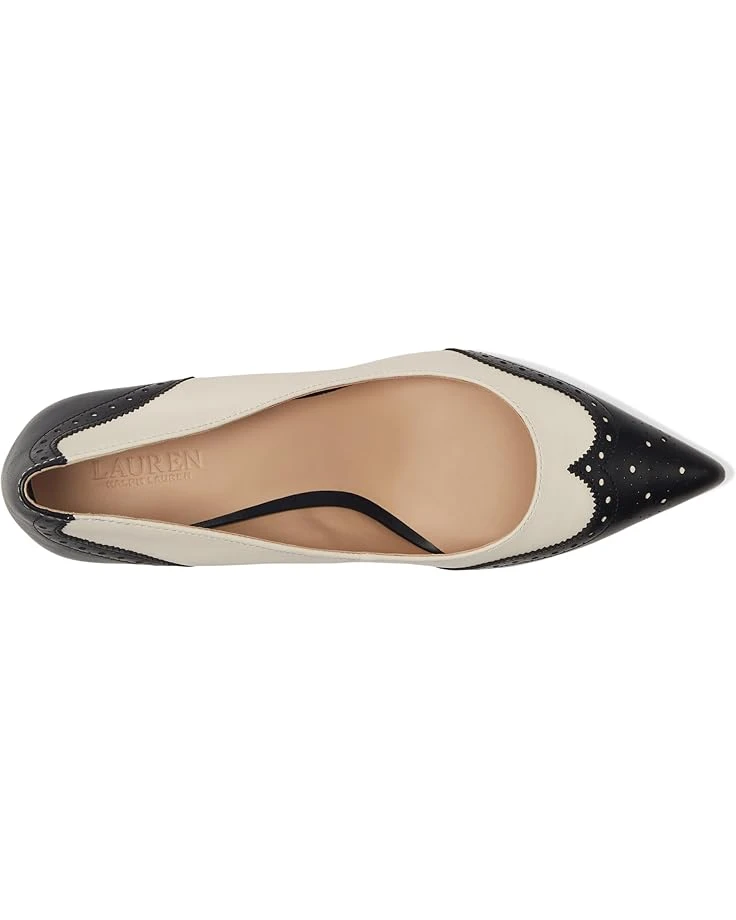 - The sleek silhouette of the Lauren Ralph Lauren® Adrienne Leather Wingtip Pumps is released in sumptuous full-grain leather for a smart Lauren Ralph Lauren staple. They are detailed with an “LRL” logo on the back for a signature finishing touch. These heeled pumps are crafted with a leather upper, padded EVA insole, and leather lining.