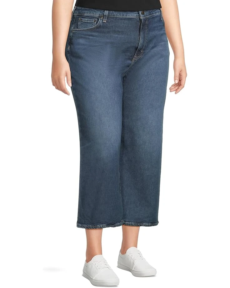 - The High-Rise Wide-Leg Cropped Jean, crafted with medium-wash denim and designed with just enough stretch for a relaxed fit. It features a high-rise style that sits above the natural waist, with a relaxed thigh and wide, cropped leg.