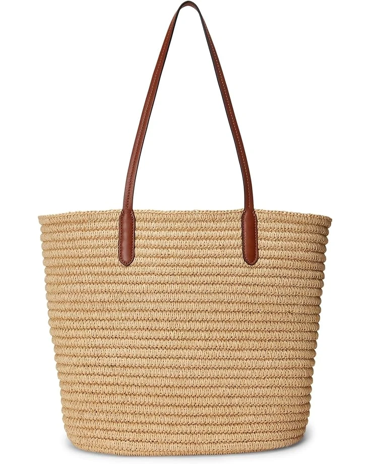 - Perfect for your beach days or backyard picnics, the LAUREN Ralph Lauren® Leather-Trim Straw Large Brie Tote Bag gives you plenty of space to carry your stuff while ensuring that you do not lose style. Woven with paper straw and trimmed with supple full-grain leather, this warm weather travel essential comes with dual leather top handles for ease of carrying and a canvas zippered pouch at the interior for added functionality.