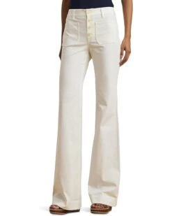- Cut for a leg-lengthening wide-leg silhouette, these pants are crafted with lightweight, stretch-infused cotton canvas in a versatile white wash. A button fly, anchor-engraved imitation pearl buttons, and patch pockets enhance their nautical-inspired appeal.